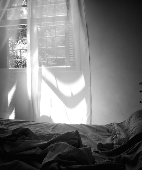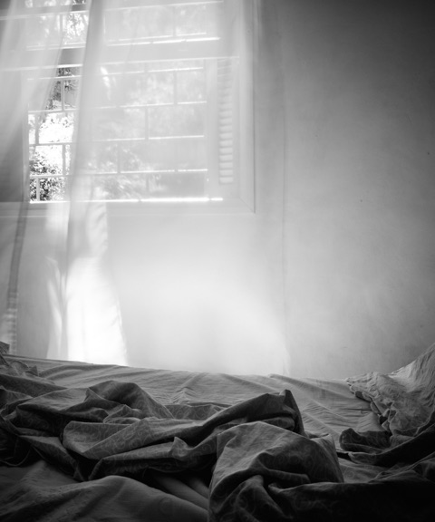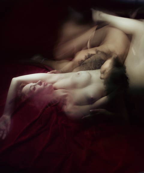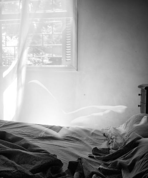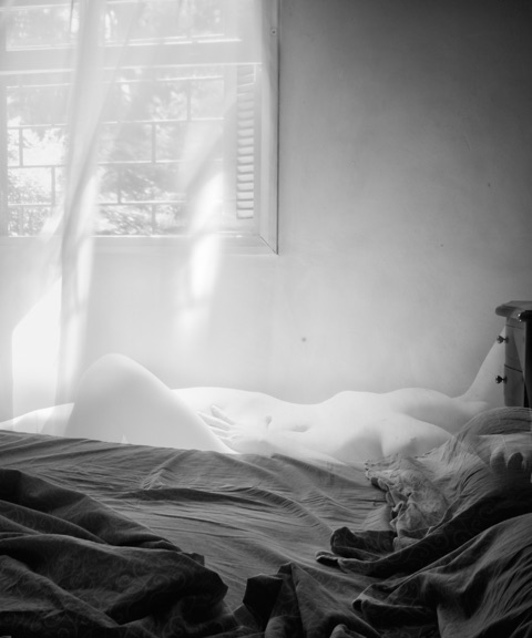 The images of a woman and a slept in bed fade into each other, like ships passing through the night, and parting as the morning comes.