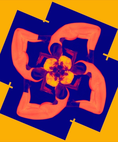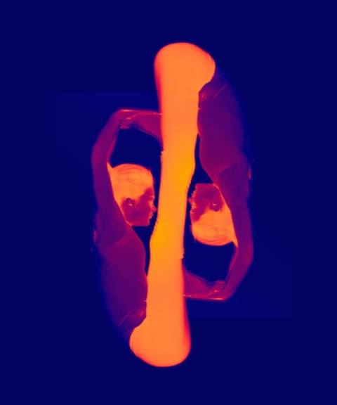 As in a frequency, which amplifies itself in a pulse of images spinning in space, as well the structure of the bodies playing the same role.